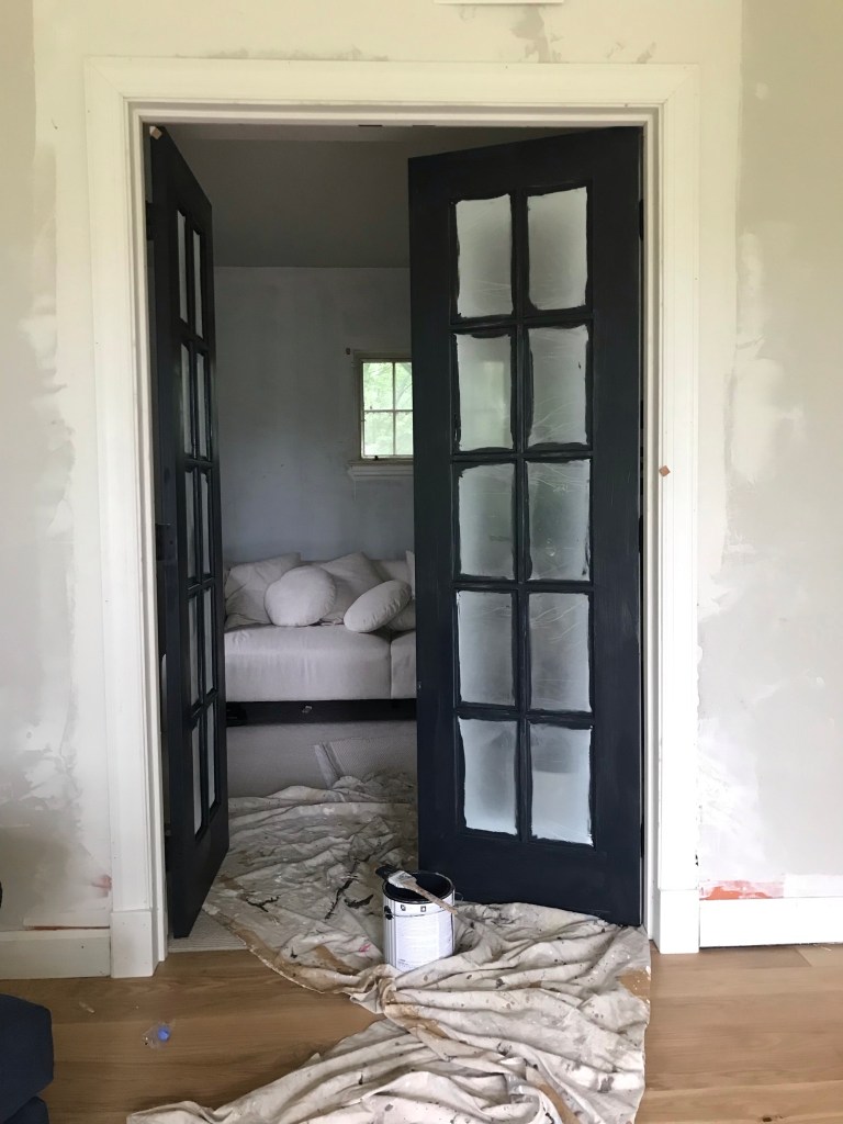 We added French doors to provide an option for privacy, but the doors let in all the beautiful light from the living room. From dark cavern to cozy lake view. Maybe our best call thus far.