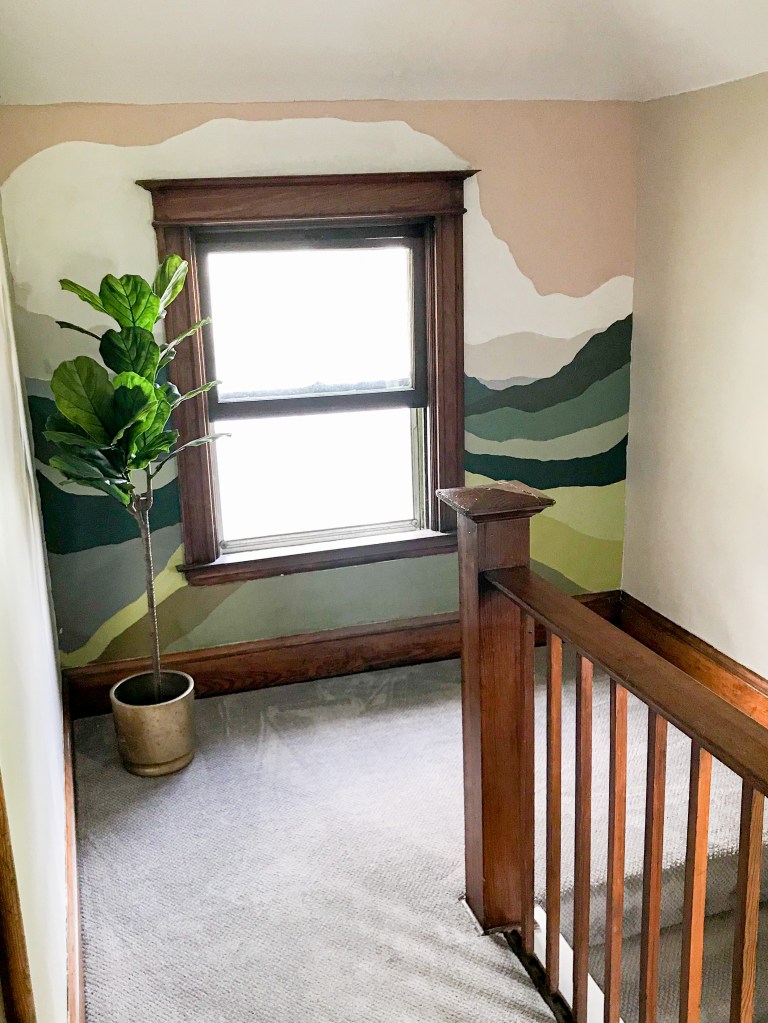 The back stairwell had a small little landing as well, and inspired by Vintage Revivals bathroom wall mural, I copied her amazing tutorial, in which Mandi even provides the paint colors.