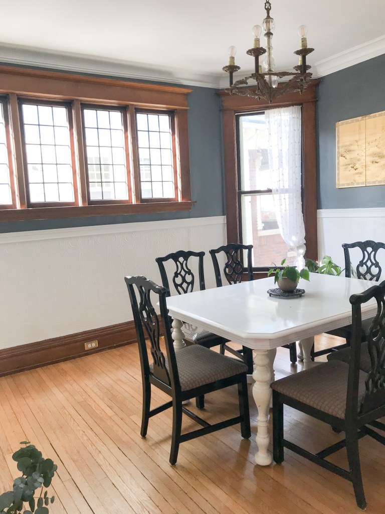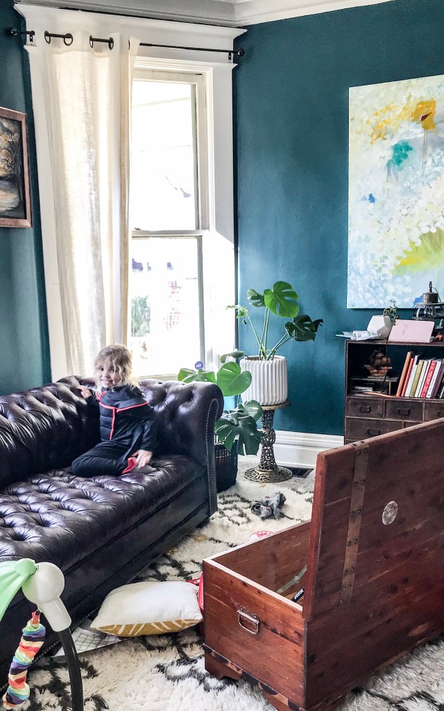 For the adjacent reading room, we went with a dark teal. I wish I had more photos of this room that justified it’s cozy draw. It was connected to the main living room via a large arch. It also had a 3” oak pocket door that led to the oh-so-grand entryway.